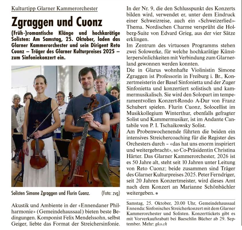 Konzert Gemeindehaus Ennenda, 25. Oktober 2025
